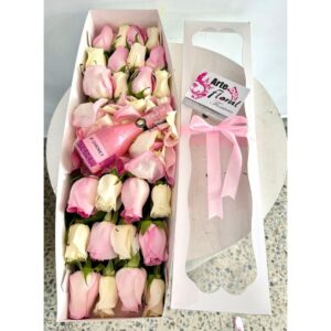Caja de rosas rosada, blancas y licor J.P- floristería Cali