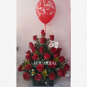 Arreglo en rosas rojas y globo