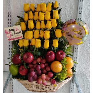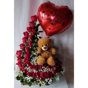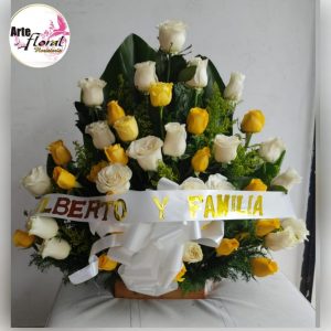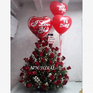 Jardinera rosas rojas, orquideas, girasoles, lirios