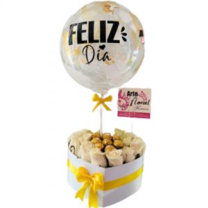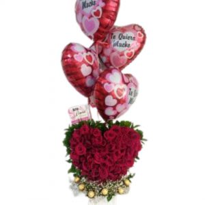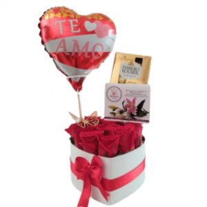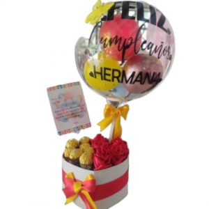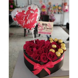 Cilindro negro con rosas rojas, ferreros x 4 y globo
