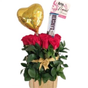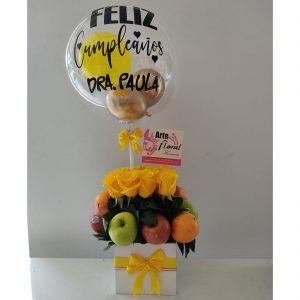 Cubito de frutas y rosas amarillas- Floristeria cali