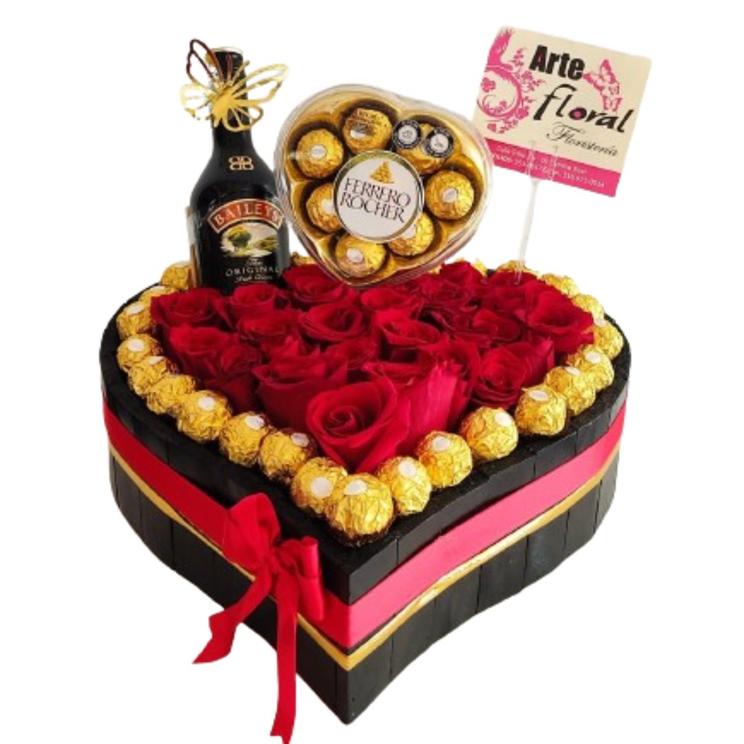 Corazón con rosas y chocolates ferreros /Floristería Cali