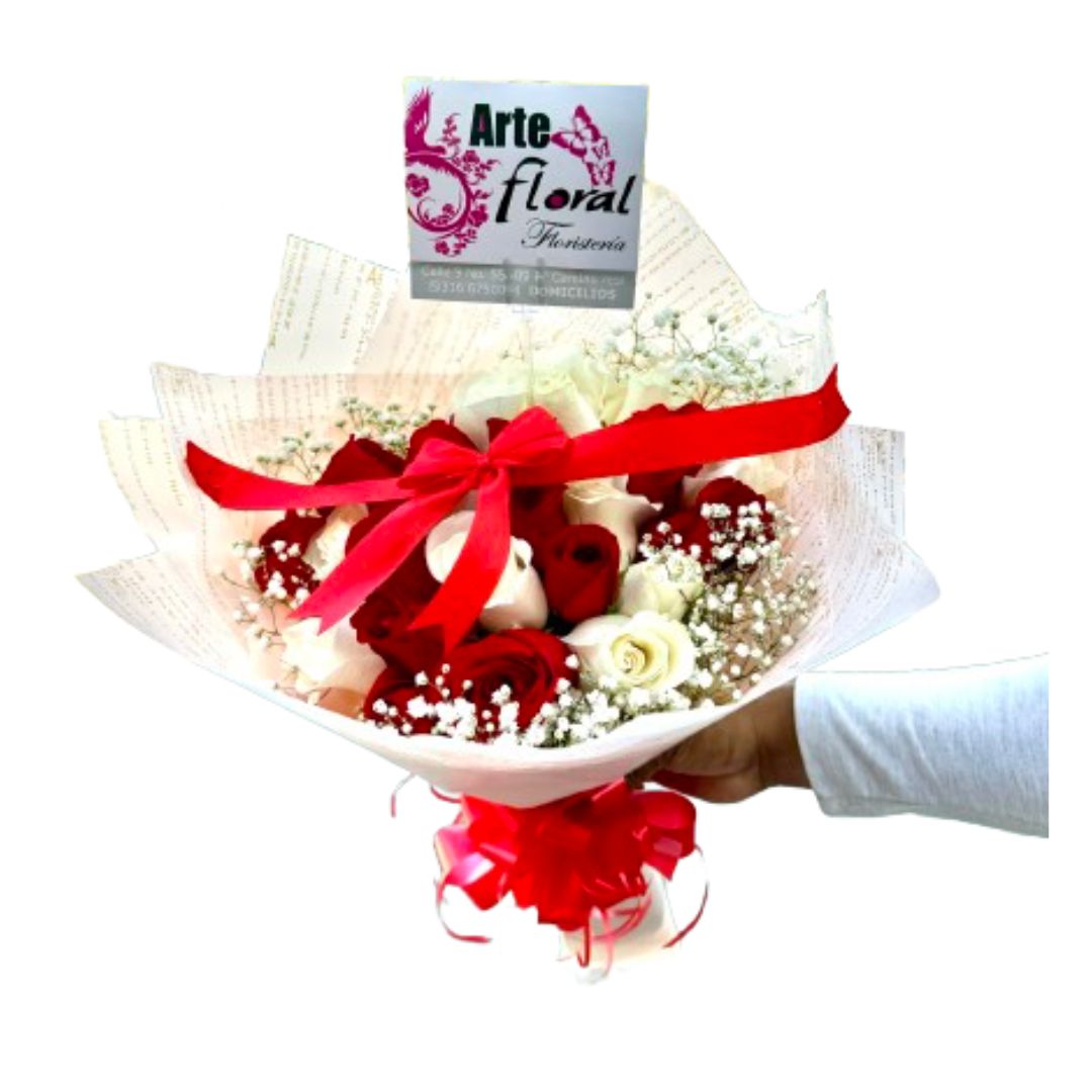 Ramo Buchón de rosas blancas y rojas -Floristería Cali