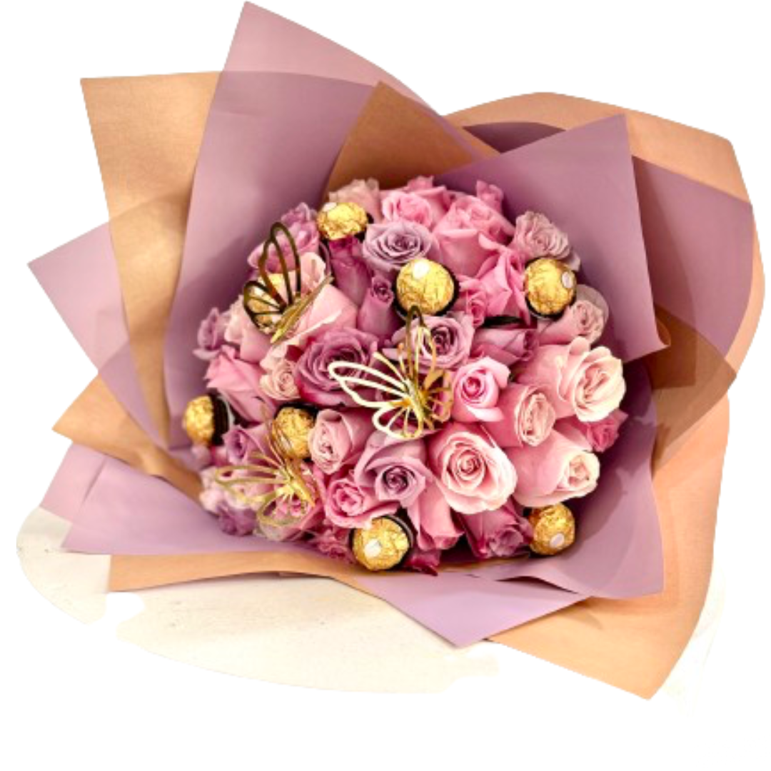 Ramo Buchón de rosas y chocolates -Floristería Cali